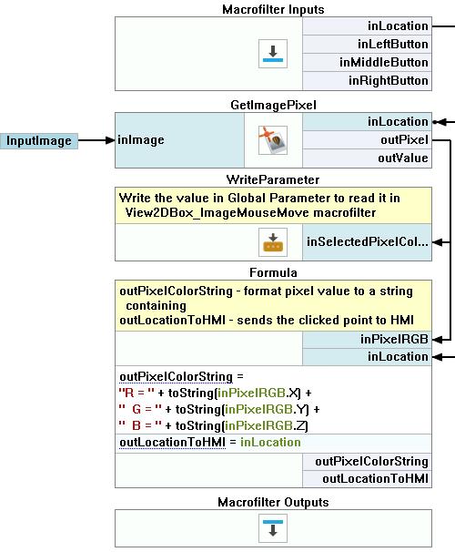 Get back to the View2DBox_ImageMouseClick event handler. Drag the InputImage global parameter from the Project Explorer and drop it on the inImage.
