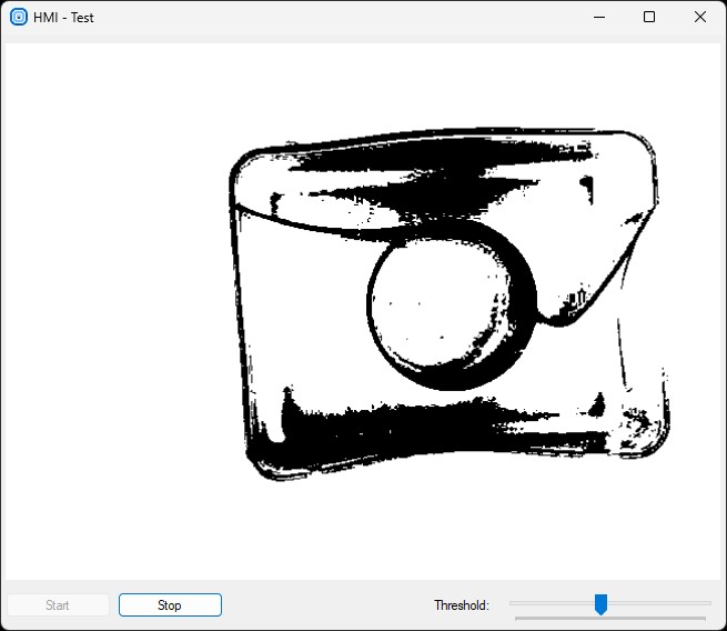To allow the user to set the lower limit of threshold range, add to the HMI the TrackBar control available in the Controls category of HMI Controls.
