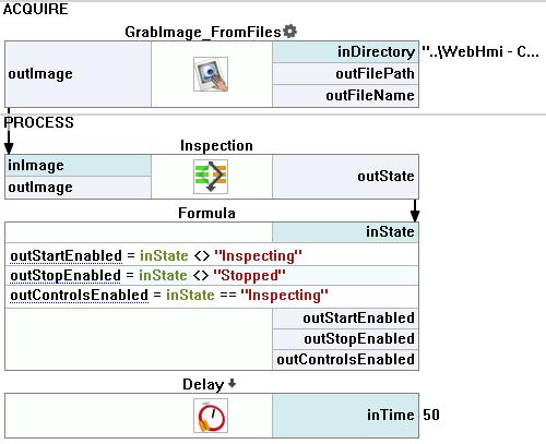 Create the outStopEnabled output of type Bool. Type the formula: inState <> "Stopped". The outStopEnabled is True if the state is Inspecting.