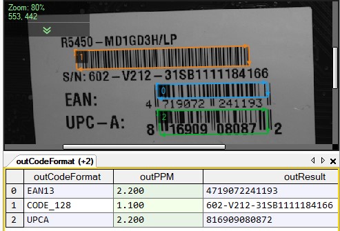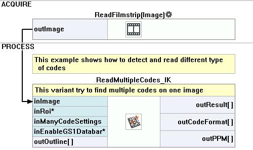 The aim of this application is to show the capabilities of the ReadMultipleCodes_IK tool when it comes to reading different types of code. Alongside its single-object equivalent, both filters inherit their code-reading efficiency from a mature library that Zebra Technologies has been developing for many years, and thus serve as an alternative to Aurora Vision software's own in-house developed tools, such as ReadMultipleBarcodes.
