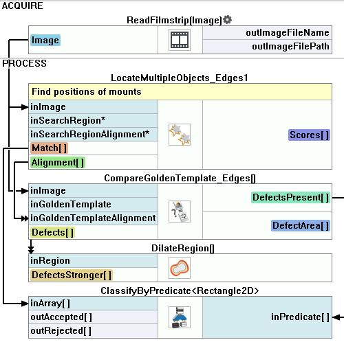 - Connect the inArray to the Match and the inPredicate to the DefectsPresent.