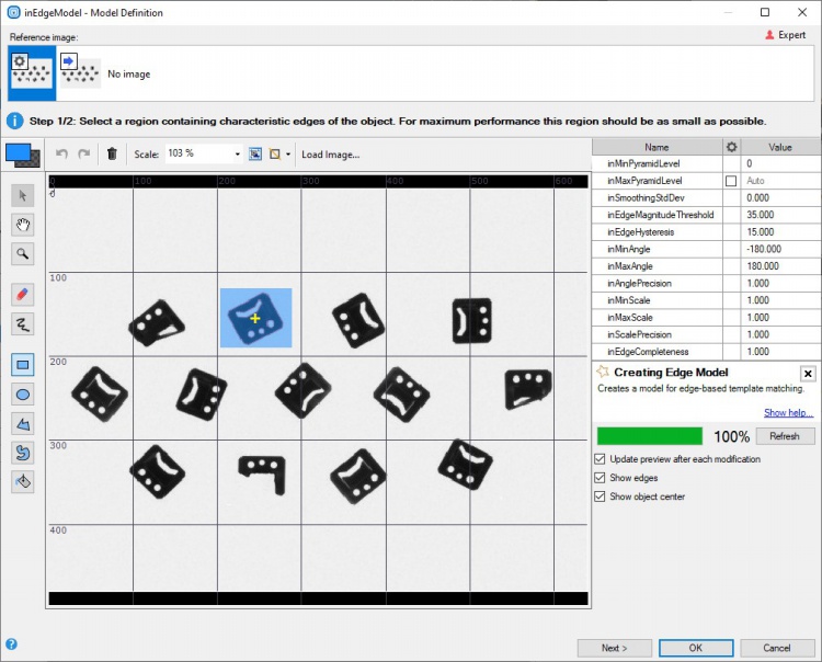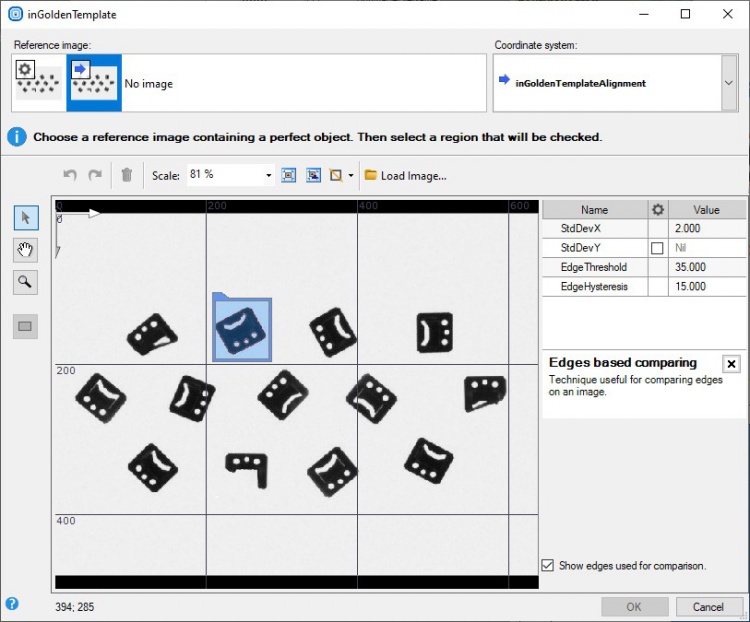 - In the EdgeGoldenTemplate editor mark the same object as in the LocateMultipleObjects_Edges1.