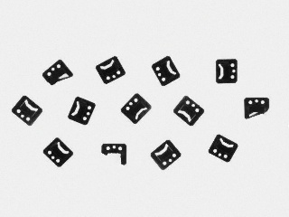An image of mounts. The position of the objects is variable. Some of the objects are damaged.