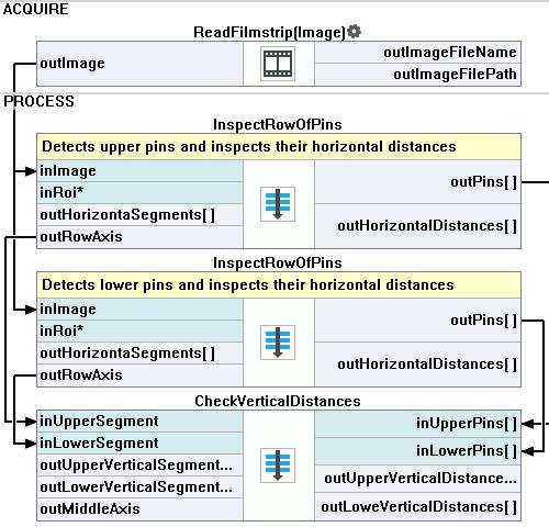 Since you created the inRoi input, you have to once again select the region in which the pins are. For the first filter select the region corresponding to the upper row and for the second filter - the bottom row.
