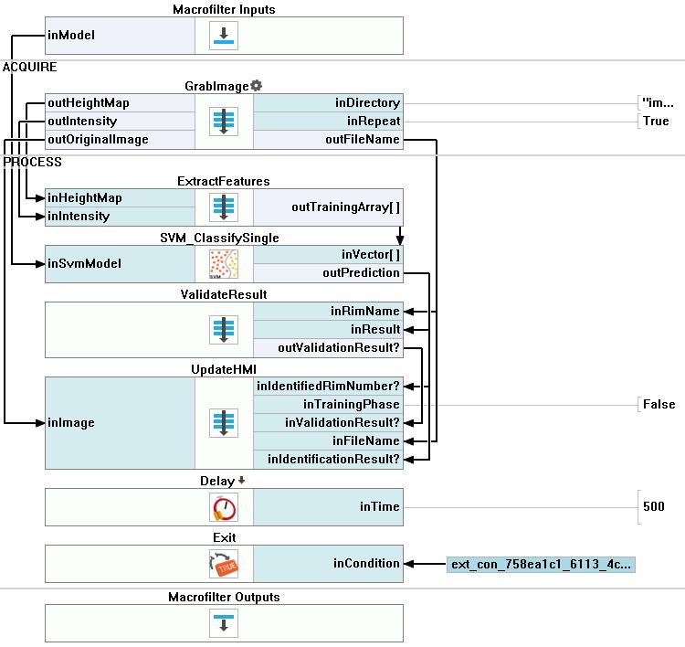 - Connect the inIdentifiedRimNumber input to the outPrediction output from the SVM_ClassifySingle.