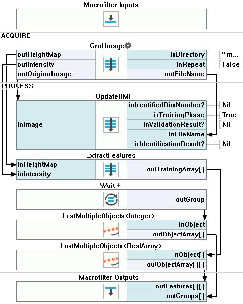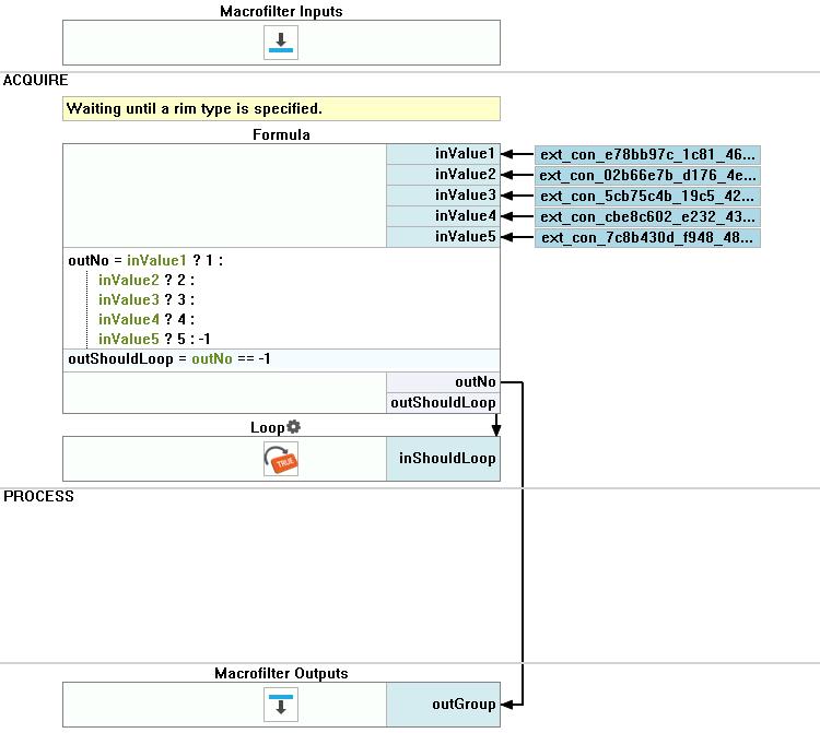 - Drag the inImage, the inIdentifiedRimNumber, the inTrainingPhase and the inValidationResult Macrofilter Inputs to the Formula, leave default names of the new inputs.