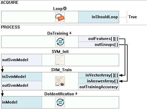 - Connect the inVector to the outTrainingArray output of the ExtractFeatures step.