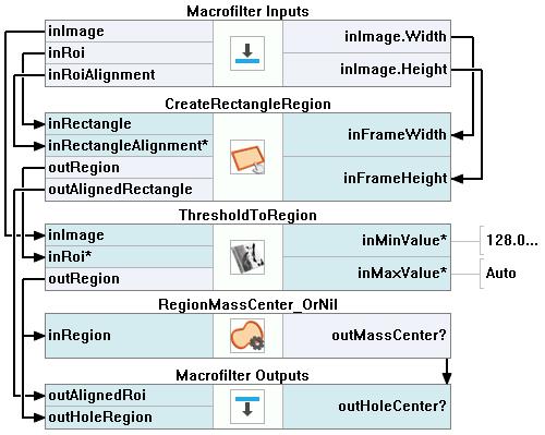 Add another DetectHole macrofilter and set its inImage, inRoiAlignment, inFrameWidth and inFrameHeight inputs as in previous steps.