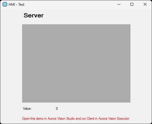 The application shows TCPIP Communication configuration - the Server version. When running with the IO Simple TCPIP Communication - Client aplication, it should be run in the Aurora Vision Studio.