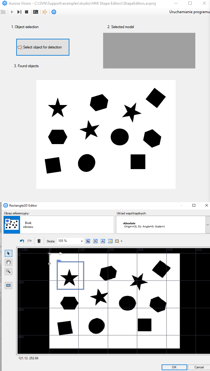 This project shows how the operator can modify the model used for Template Matching with the HMI controls. Please run the application to see how it works.