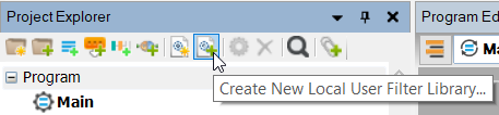 To add a new local user filter use the "Create New Local User Filter Library.." button in the Project Explorer panel as on the image below:
