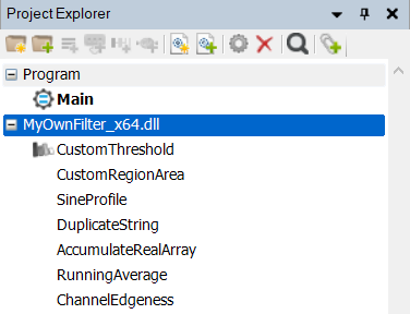 User filters are grouped in user filter libraries. Every user filter library is a single .dll file built using Microsoft Visual Studio. It can contain one or more filters that can be used in programs developed with Aurora Vision Studio.