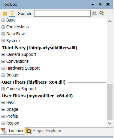 - Global – once created or imported to Aurora Vision Studio they can be used in all projects. The filters from such libraries are visible in the Libraries tab of the Toolbox.