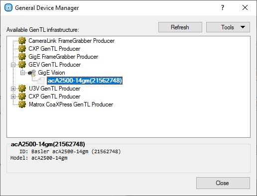 - Choose Tools » Manage GenICam Devices... from the Main Menu.