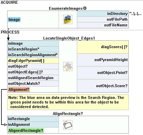 Add LocateSingleObject_Edges1 filter to PROCESS section and connect it with the input image.