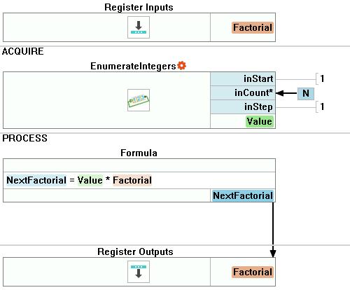 Connect the NextFactorial formula's output with the register's output: nextFactorial .