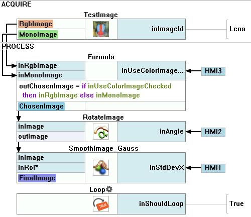 Add the SmoothImage_Gauss filter. This filter's input will be outImage from RotateImage.