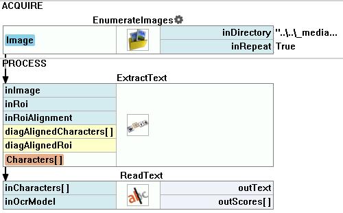 To perform most of the OCR applications two filters are needed. Extracting the text from the image can be done using the ExtractText filter. To get textual values from regions the ReadText filter can be used. Both of these filters has a specialized GUI editor which is a convenient way to perform the text reading.