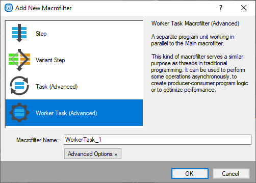 Please note, that due to their special use Worker Tasks can only be created in the Project Explorer. For more information on Worker Tasks please refer to Macrofilters article.