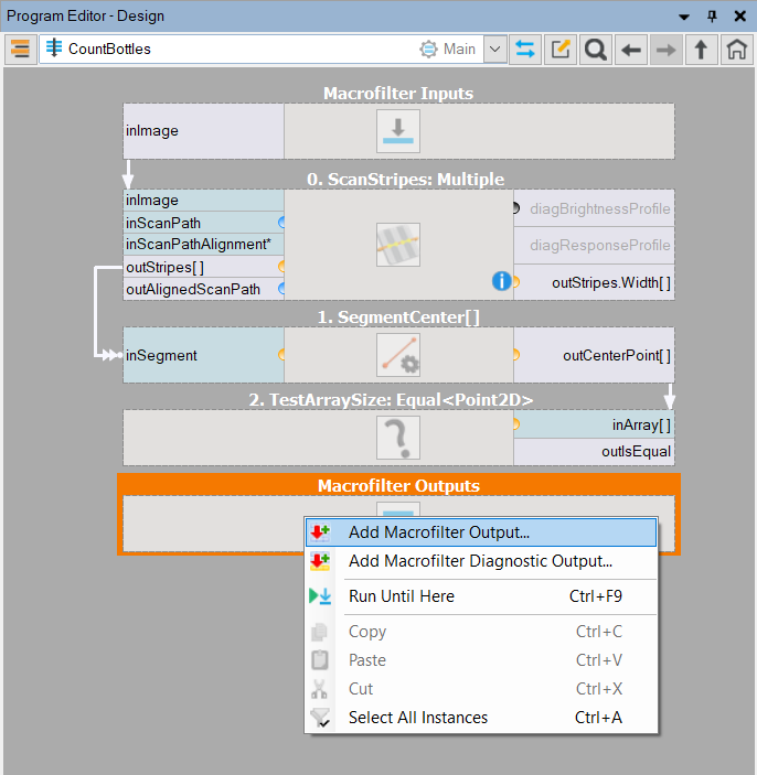 ![]() Adding a new output using the context menu of the Macrofilter Outputs block. |