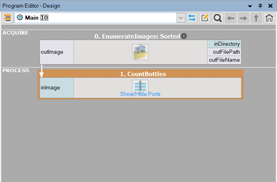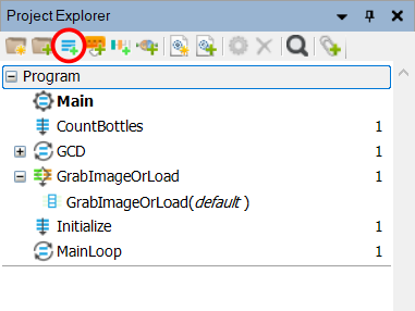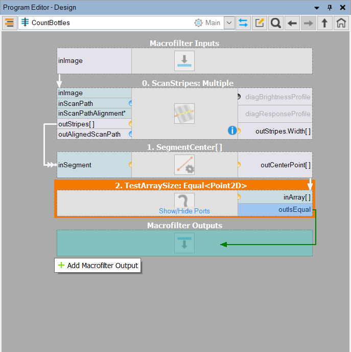When you create a new project, it contains exactly one macrofilter, named "Main". This is the top level macrofilter from which the program execution will start. Further macrofilters can be added by extracting them from existing filters or by creating them in the Project Explorer window.