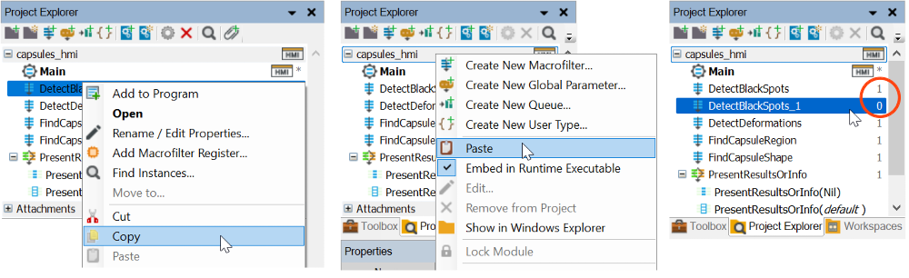 2. When copying the parent macrofilter (first nest level) in the Project Explorer, new instances of nested (child) macrofilters will be created.