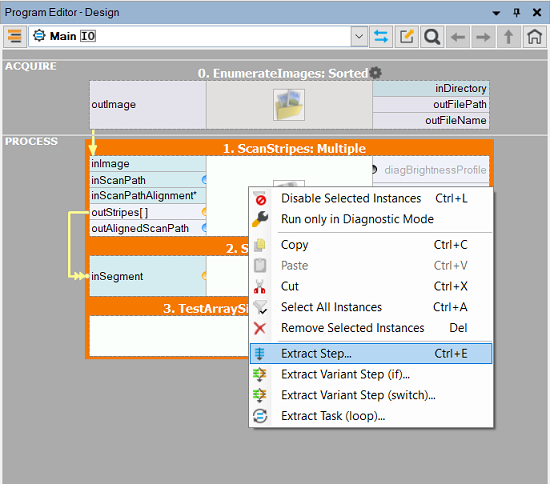 The most straightforward way of creating a macrofilter is by extracting it from several filters contained in an existing macrofilter. This is done by selecting several filters in the Program Editor and choosing the Extract Step... command from the context menu, as depicted in the picture below: