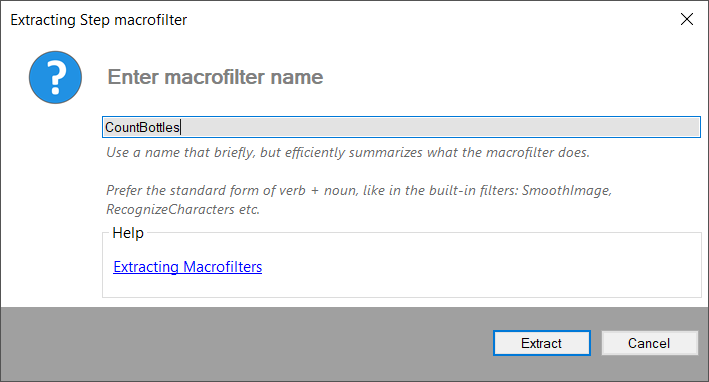 - Macrofilter names do not affect the program execution, but they are very important for effective maintenance. Choose precise and unambiguous English names. Follow the verb + noun naming convention whenever possible and avoid abbreviations (this applies also to names of macrofilter ports).