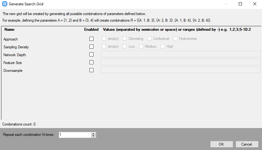 The view is common for all deep learning tools. To create an appropriate grid search, choose these parameters which are correct for the used tool (the ones you can see in Training Parameters). For DL_DetectAnomalies2 choose the network type first to see the appropriate parameters.