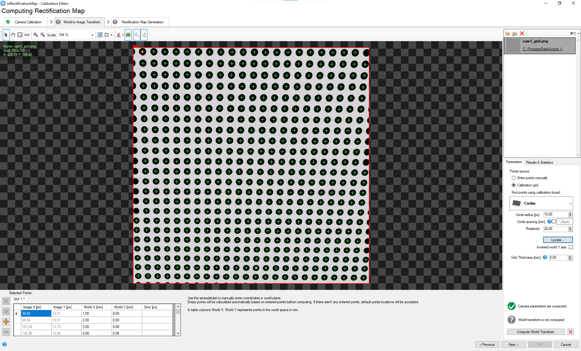 ![]() World to Image Transform - grid spacing calculated from world point coordinates given by the user. |