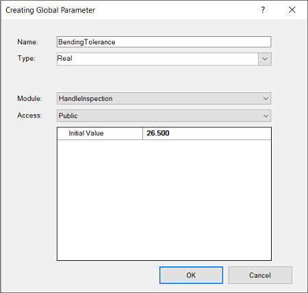 Global parameters contained in a project can also be edited in the Properties window after being selected in the Project Explorer or in the Program Editor.