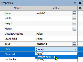- Left-click the WebHMI control that will be the source of an event and look up its properties. To find which controls have defined events, refer to the Standard WebHMI Controls entry.