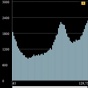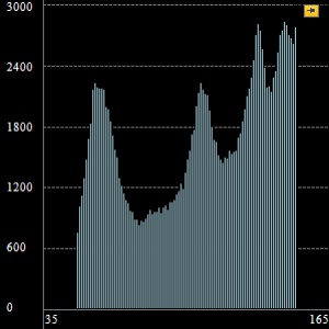 CropHistogram performed on the sample histogram with inStart = 15, inBinCount = 65.
