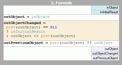 In first iteration output outPreviousObject is equal to value on inObject