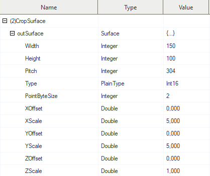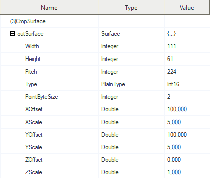 Flag inPreserveDimensions informs if the operation output should keep the original dimensions of its input. E.g. if inSurface has its Width=300, Height=200 and Pitch=608 and the flag is enabled, the outSurface will have exactly the same dimensions of 300x200x608. However, if the flag is disabled, outSurface will have its dimensions smaller to adjust them to surface size, but its XOffset, YOffset, ZOffset properties will be accordingly bigger in order to keep the surface in the same place in workspace.