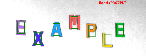 The table below shows recognition results for characters extracted from the example image. An unrecognized character is colored in red.