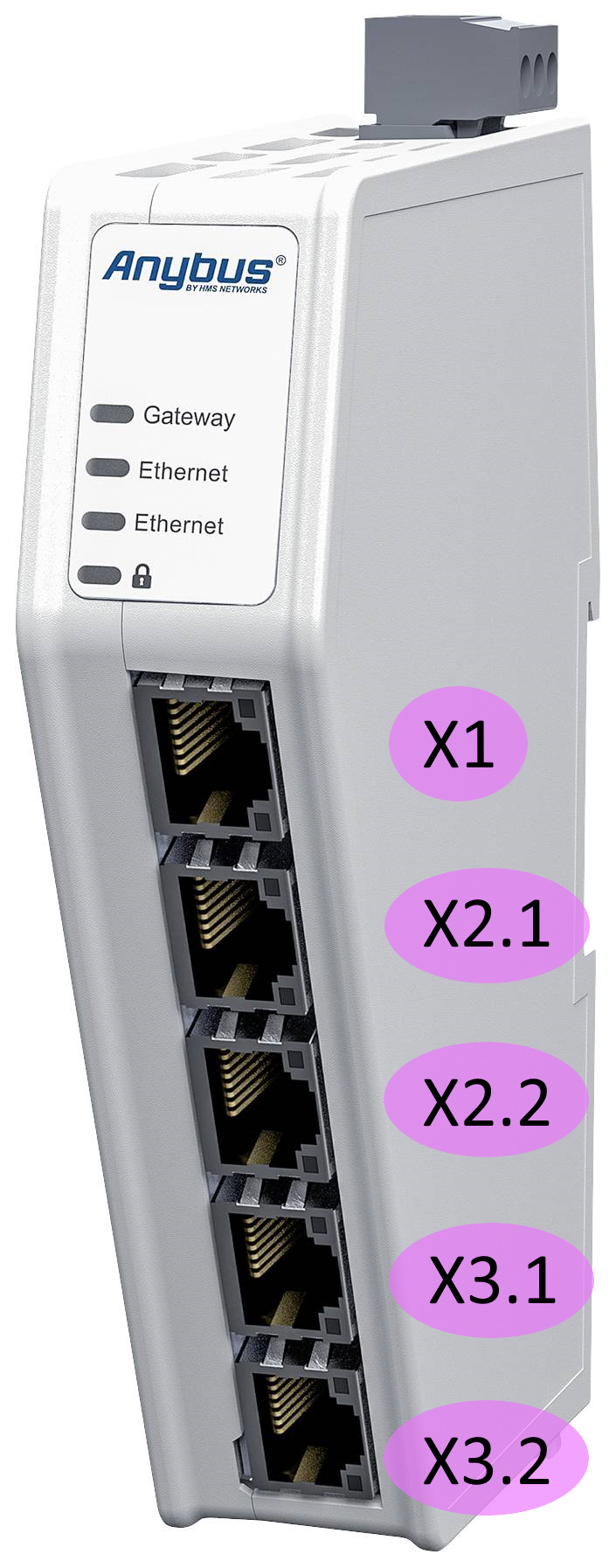 - X2.1 - configurable port from network 1. Configured as Profinet. Connected to switch.