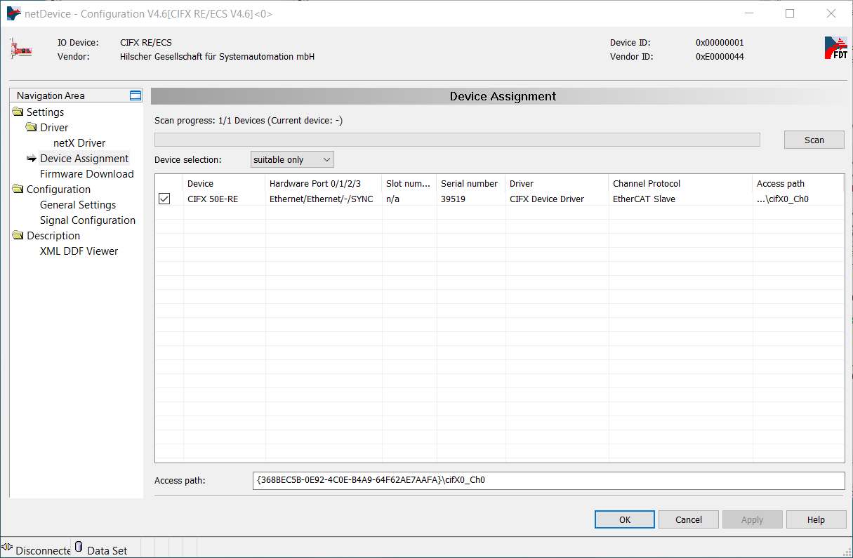 2. Check in your device in Device Assignment. This step was described in Configuration using SYCON.net section of this tutorial.