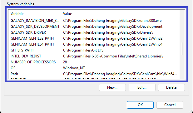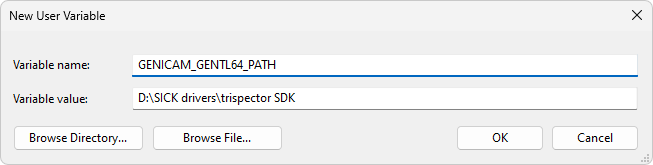 - Check if variables GENICAM_GENTL64_PATH and GENICAM_GENTL32_PATH exist. To do it browse the selected window: