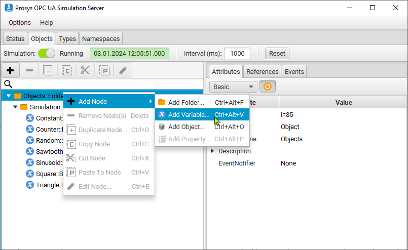 - OPC UA server simulator, e.g. OPC UA Simulation Server