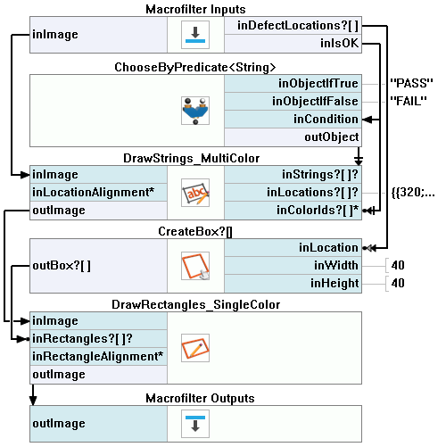 - Connect the macrofilter's input inDefectLocations to the inLocation,