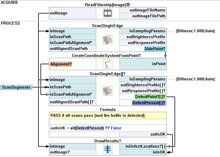 Add the ScanSingleEdge filter. Connect the outImage output of the ReadFilmstrip to the inImage.