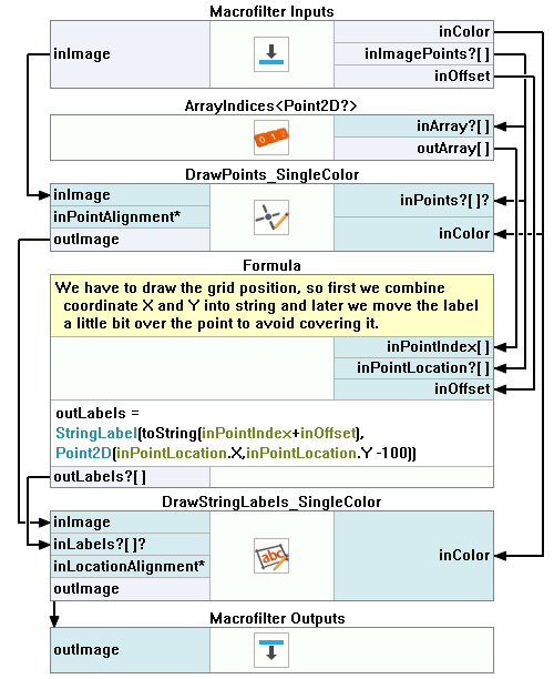 Create the AnnotatedPoint2DArray Formula's input, name it inImageGrid and connect it with the macrofilter's inImageGrid input.