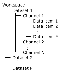 The offline data is organized in the Workspace-Dataset-Channel-Data tree structure: