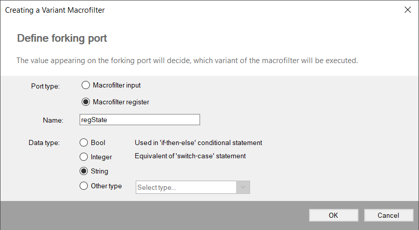- Add macrofilter outputs that will contain information about the results. In each state these outputs can be computed in a different way.