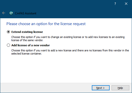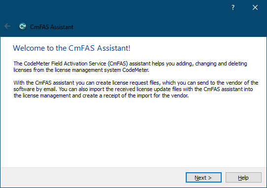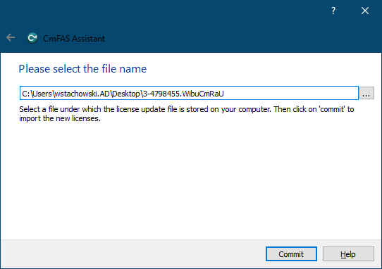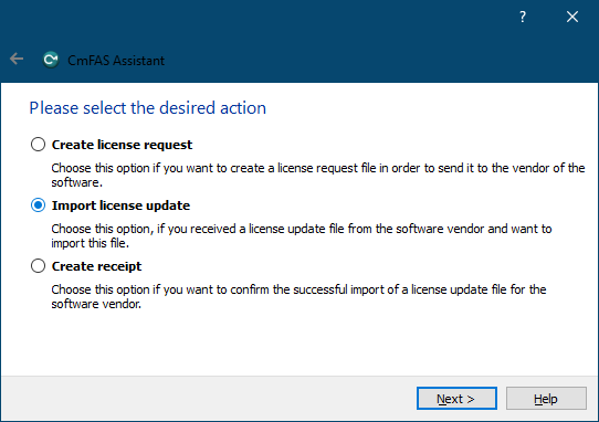 Next step is to choose dongle, that is about to be upgraded and then click on "License Update" button, which will bring CmFas Assistant window: