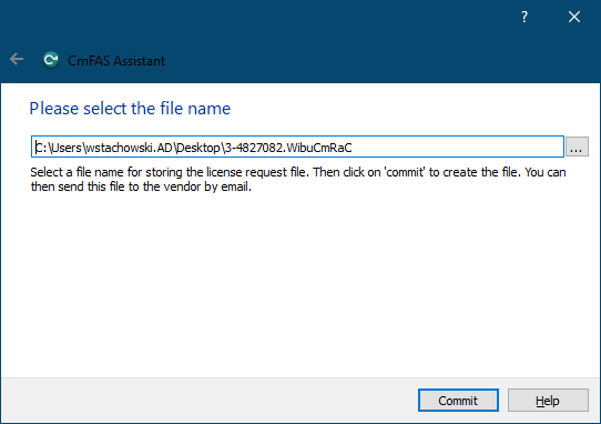 The last step of creation WibuCmRac file is to choose its name (default is fine) and localization.