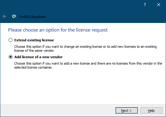 If your dongle happens to be empty (no prior Aurora Vision license is programmed, and list with available producers is empty), you need to select "Add license of a new vendor" option in CmFAS Assistant: