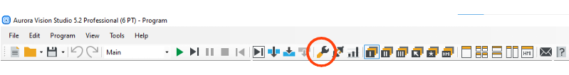 The execution mode can be easily changed in Aurora Vision Studio using a button on the Application Toolbar. Outside of Aurora Vision Studio, programs are always executed in the Non-Diagnostic mode to provide the highest performance.