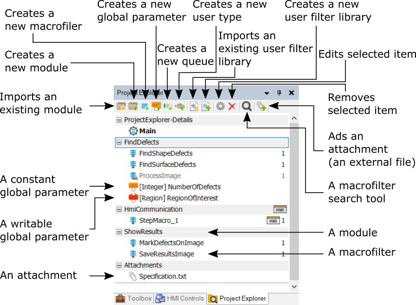 In Aurora Vision Studio global parameters belong to specific modules and are managed in the Project Explorer.